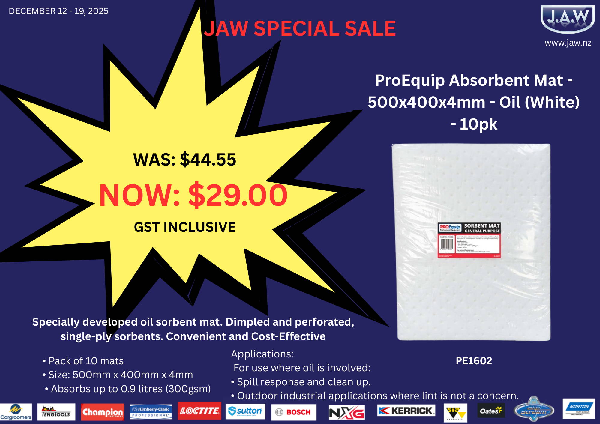 ProEquip Absorbent Mat - 500x400x4mm - Oil (White) - 10pk
